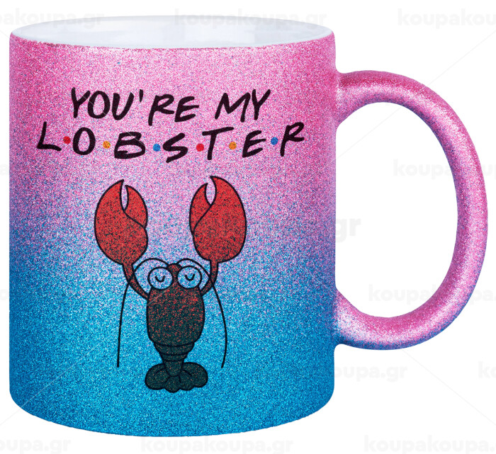 Friends you're my lobster, Κούπα Χρυσή/Μπλε Glitter, κεραμική, 330ml