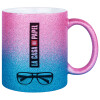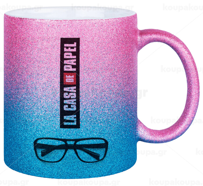 la professor, γυαλιά, Κούπα Χρυσή/Μπλε Glitter, κεραμική, 330ml