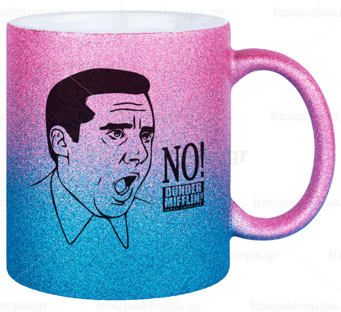The office Michael NO!!!, Κούπα Χρυσή/Μπλε Glitter, κεραμική, 330ml