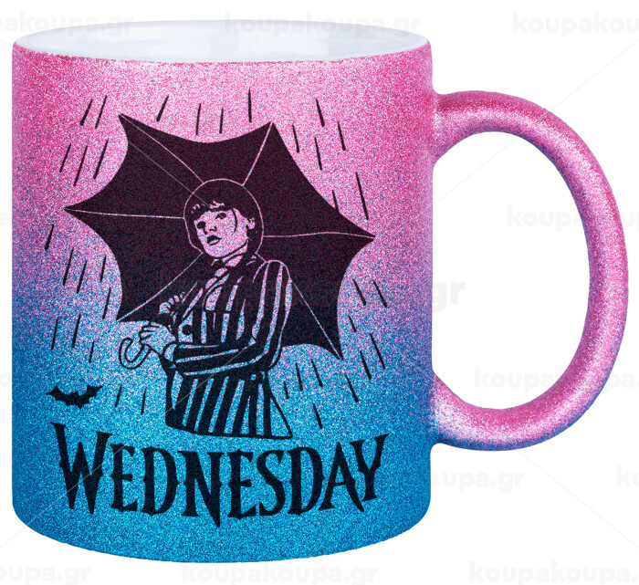 Wednesday Addams, Κούπα Χρυσή/Μπλε Glitter, κεραμική, 330ml