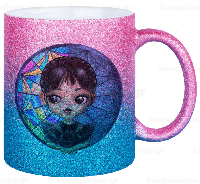 Wednesday big eyes, Κούπα Χρυσή/Μπλε Glitter, κεραμική, 330ml