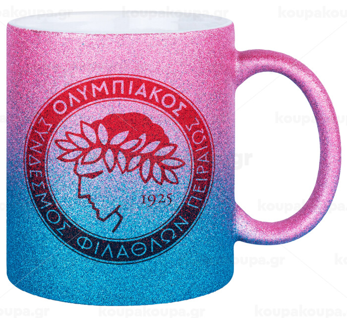 Ολυμπιακός, Κούπα Χρυσή/Μπλε Glitter, κεραμική, 330ml