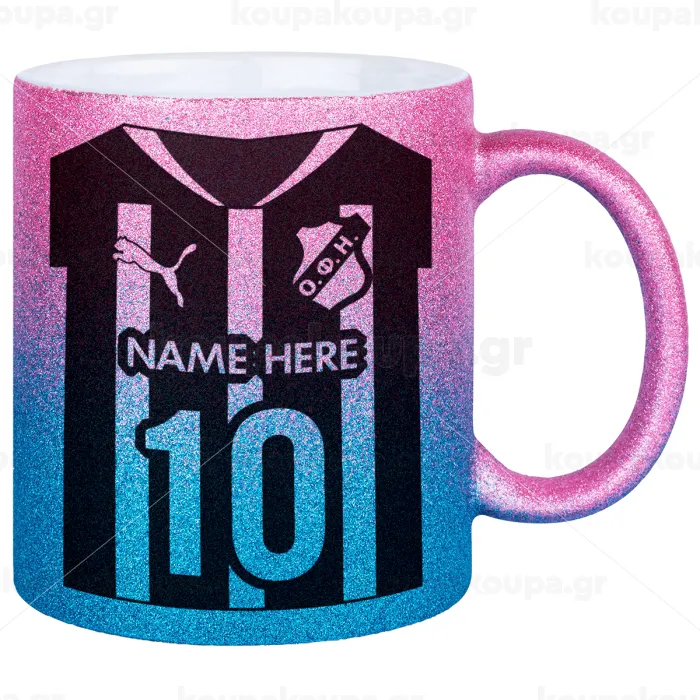 ΟΦΗ εμφάνιση, Κούπα Χρυσή/Μπλε Glitter, κεραμική, 330ml