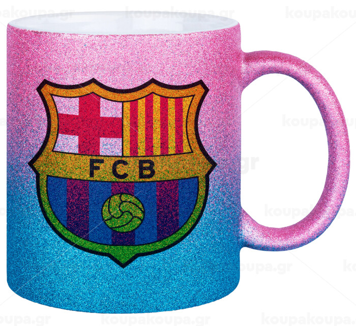Barcelona FC, Κούπα Χρυσή/Μπλε Glitter, κεραμική, 330ml