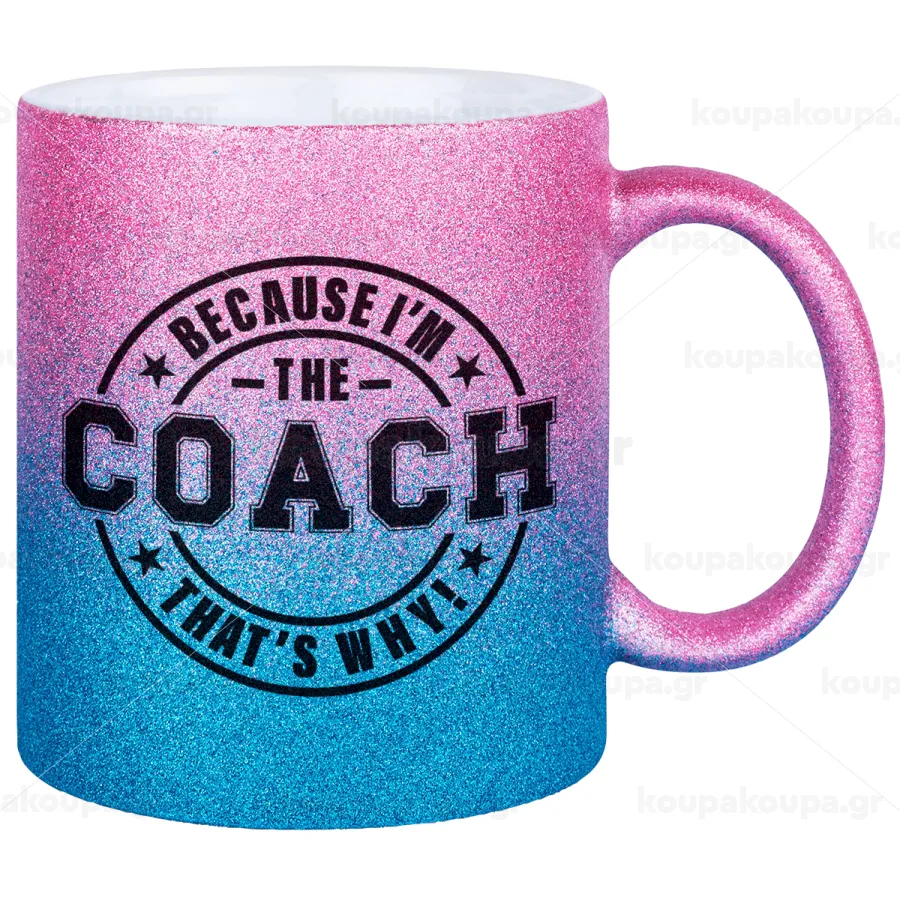 Because i'm the Coach, Κούπα Χρυσή/Μπλε Glitter, κεραμική, 330ml