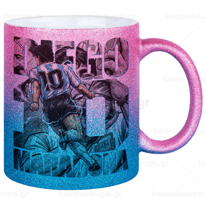 Diego Maradona (Ντιέγκο Μαραντόνα), Κούπα Χρυσή/Μπλε Glitter, κεραμική, 330ml