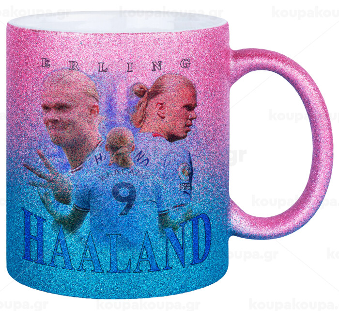 Erling Haaland, Κούπα Χρυσή/Μπλε Glitter, κεραμική, 330ml