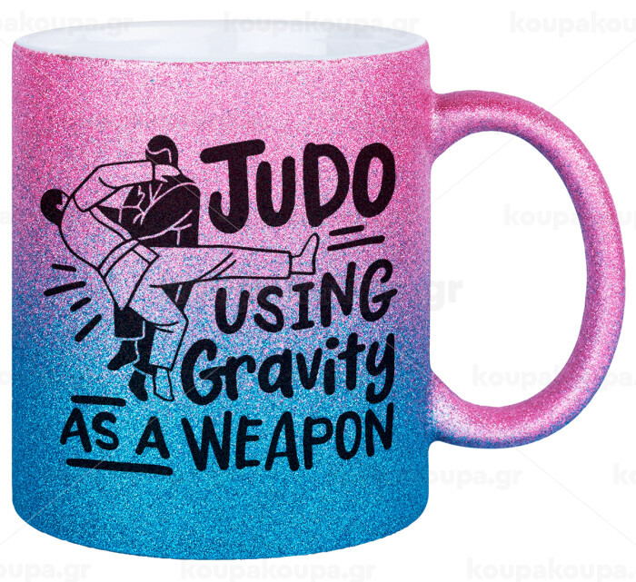 Judo using gravity as a weapon, Κούπα Χρυσή/Μπλε Glitter, κεραμική, 330ml