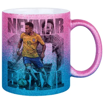 Neymar (Νεϊμάρ), Κούπα Χρυσή/Μπλε Glitter, κεραμική, 330ml