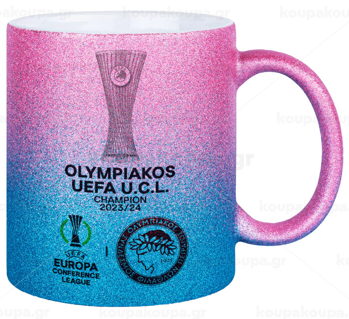 Olympiacos UEFA Europa Conference League Champion 2023/24, Κούπα Χρυσή/Μπλε Glitter, κεραμική, 330ml