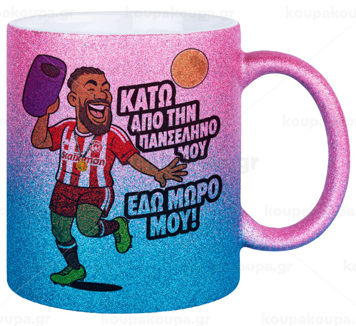 Ροντινέι, "ΚΑΤΩ ΑΠΟ ΤΗΝ ΠΑΝΣΕΛΗΝΟ ΜΟΥ!", Κούπα Χρυσή/Μπλε Glitter, κεραμική, 330ml