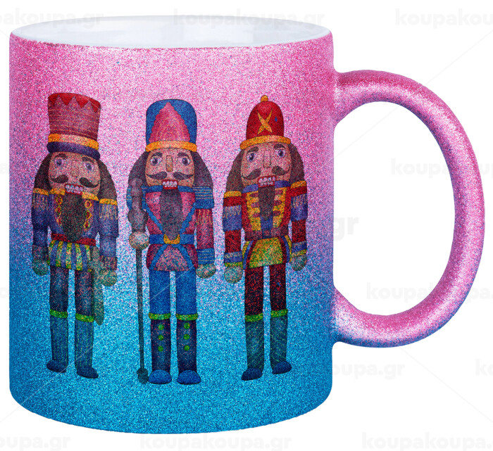 Christmas Nutcrackers, Κούπα Χρυσή/Μπλε Glitter, κεραμική, 330ml