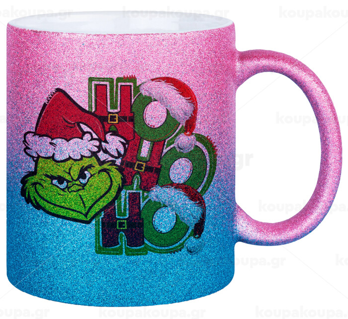 Grinch ho ho ho, Κούπα Χρυσή/Μπλε Glitter, κεραμική, 330ml