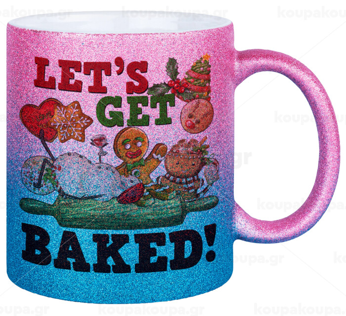 Let's get baked, Κούπα Χρυσή/Μπλε Glitter, κεραμική, 330ml