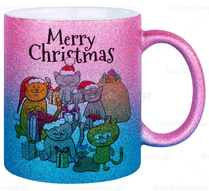 Merry Christmas Cats, Κούπα Χρυσή/Μπλε Glitter, κεραμική, 330ml