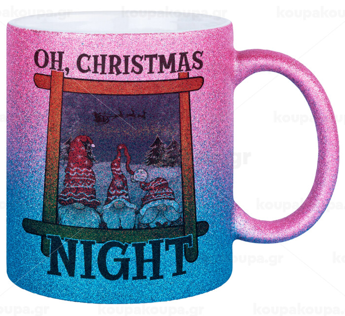 Oh Christmas Night, Κούπα Χρυσή/Μπλε Glitter, κεραμική, 330ml