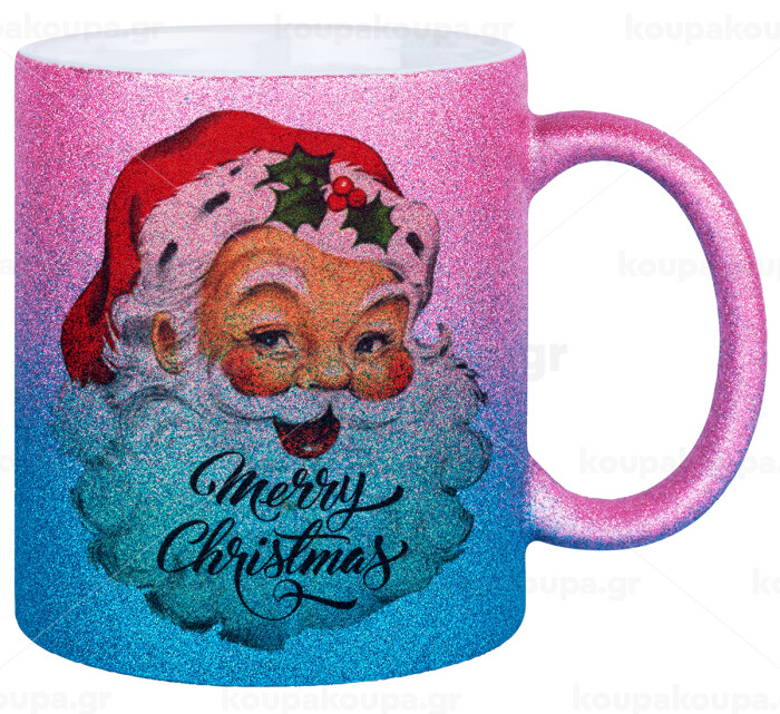 Santa vintage, Κούπα Χρυσή/Μπλε Glitter, κεραμική, 330ml