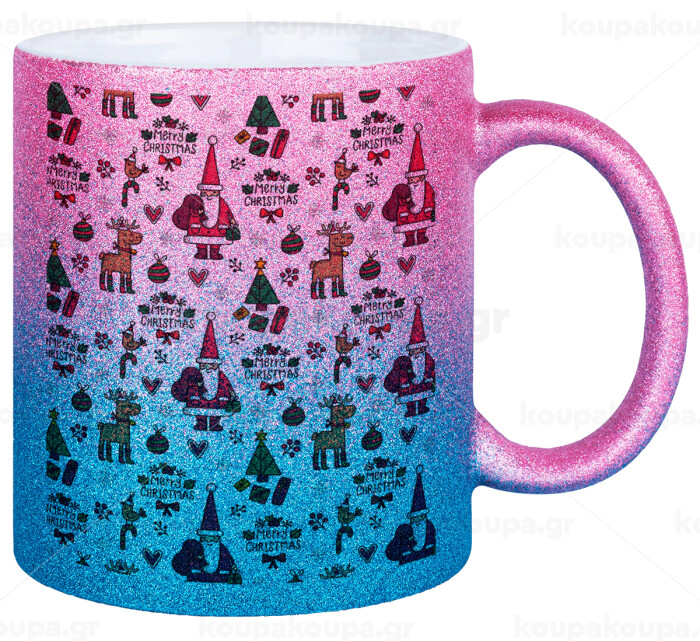 Santas, Deers & Trees, Κούπα Χρυσή/Μπλε Glitter, κεραμική, 330ml