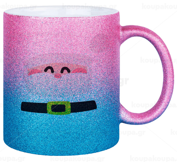 Simple Santa, Κούπα Χρυσή/Μπλε Glitter, κεραμική, 330ml