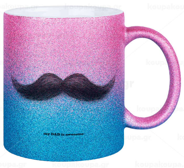 Ο καλύτερος μουστακαλής του κόσμου!!!, Κούπα Χρυσή/Μπλε Glitter, κεραμική, 330ml