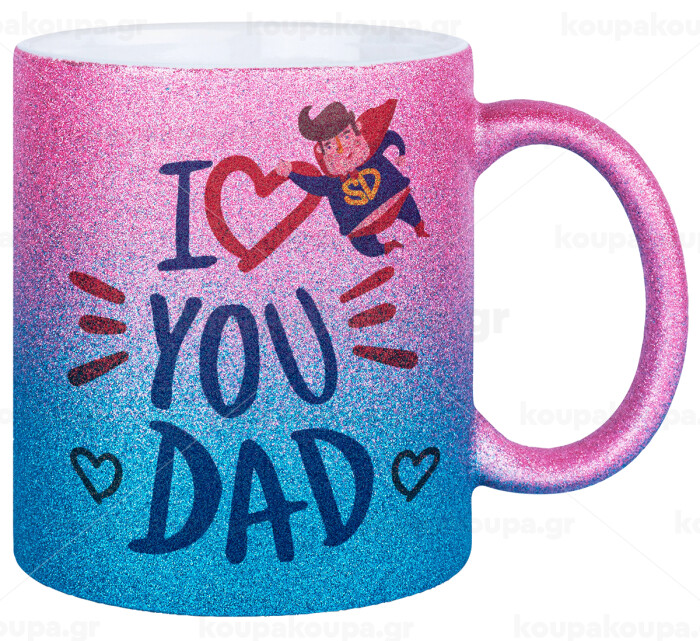 Super Dad, Κούπα Χρυσή/Μπλε Glitter, κεραμική, 330ml