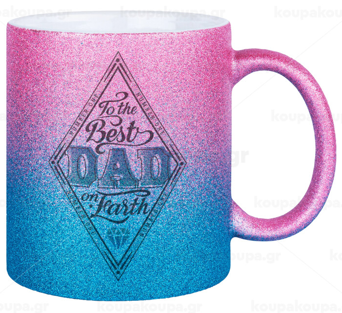 To the best DAD on earth, Κούπα Χρυσή/Μπλε Glitter, κεραμική, 330ml