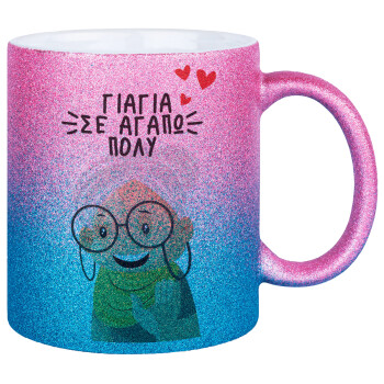 Γιαγιά σε αγαπώ πολύ!, Κούπα Χρυσή/Μπλε Glitter, κεραμική, 330ml