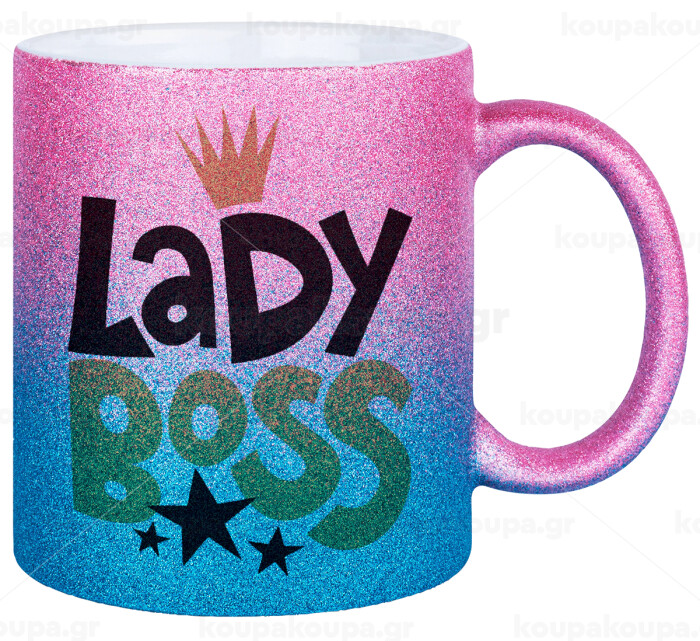 Lady Boss, Κούπα Χρυσή/Μπλε Glitter, κεραμική, 330ml