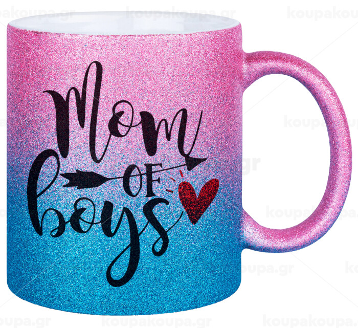 Mom of boys, Κούπα Χρυσή/Μπλε Glitter, κεραμική, 330ml