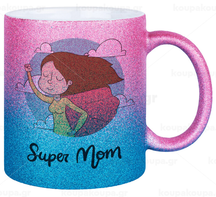 Super mom, Κούπα Χρυσή/Μπλε Glitter, κεραμική, 330ml