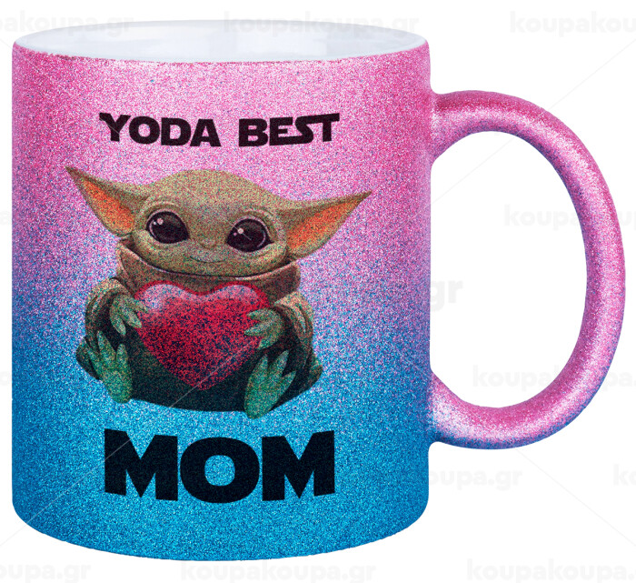 Yoda Best mom, Κούπα Χρυσή/Μπλε Glitter, κεραμική, 330ml