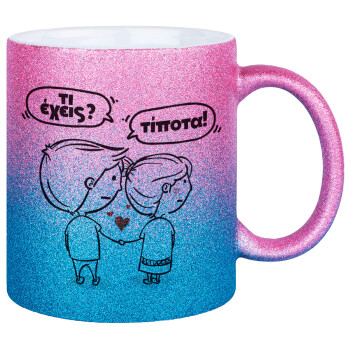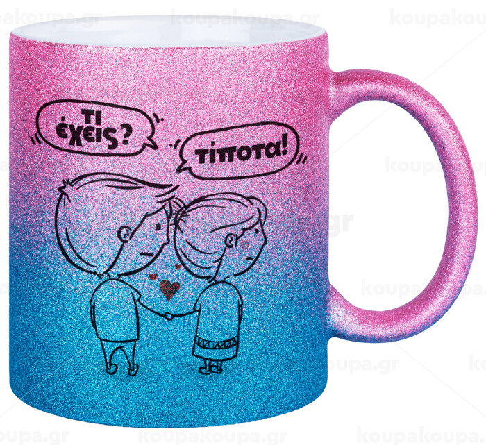Τι έχεις? Τίποτα!, Κούπα Χρυσή/Μπλε Glitter, κεραμική, 330ml