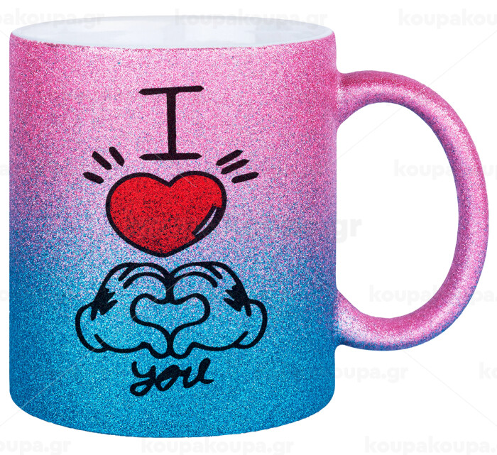 comics hands love, Κούπα Χρυσή/Μπλε Glitter, κεραμική, 330ml