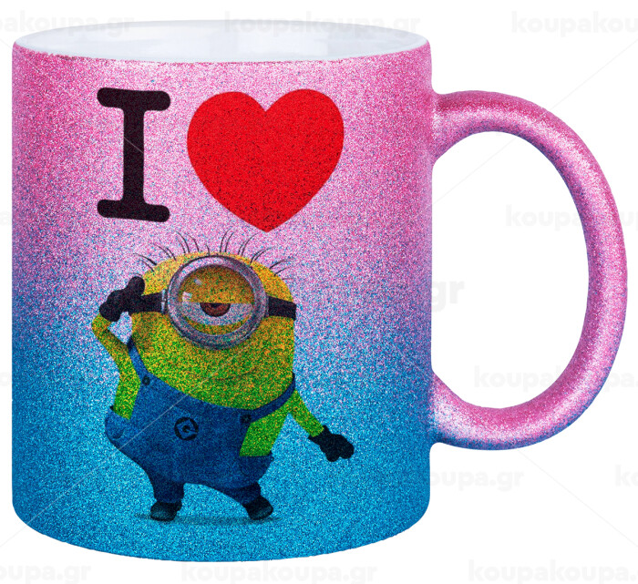 I love by minion, Κούπα Χρυσή/Μπλε Glitter, κεραμική, 330ml