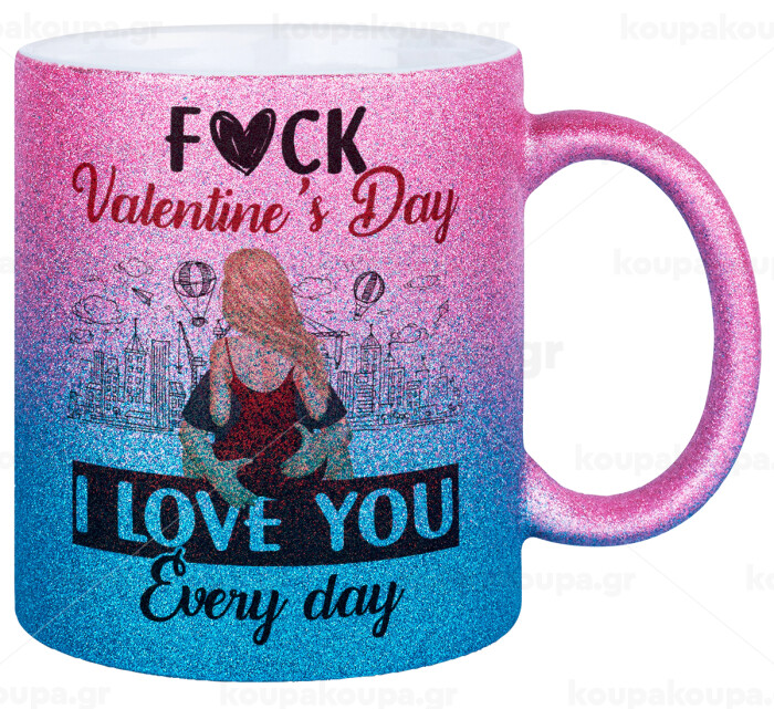 I love You Everyday , Κούπα Χρυσή/Μπλε Glitter, κεραμική, 330ml