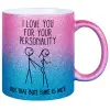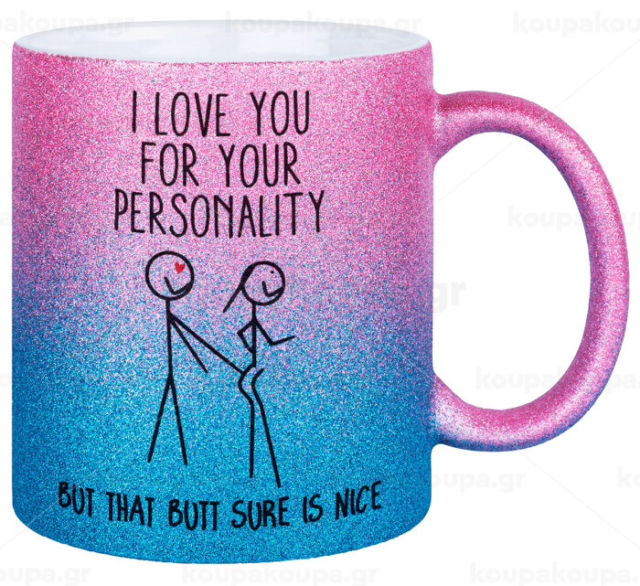 I Love you for your personality, Κούπα Χρυσή/Μπλε Glitter, κεραμική, 330ml