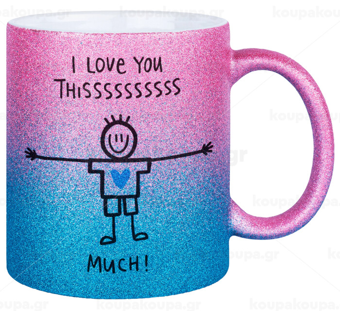 I Love you thissss much (boy)..., Κούπα Χρυσή/Μπλε Glitter, κεραμική, 330ml