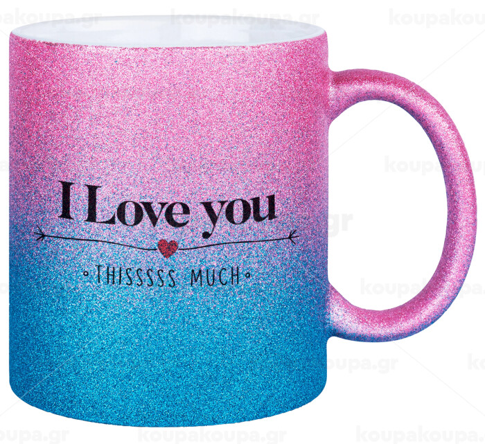 I Love you thisssss much, Κούπα Χρυσή/Μπλε Glitter, κεραμική, 330ml