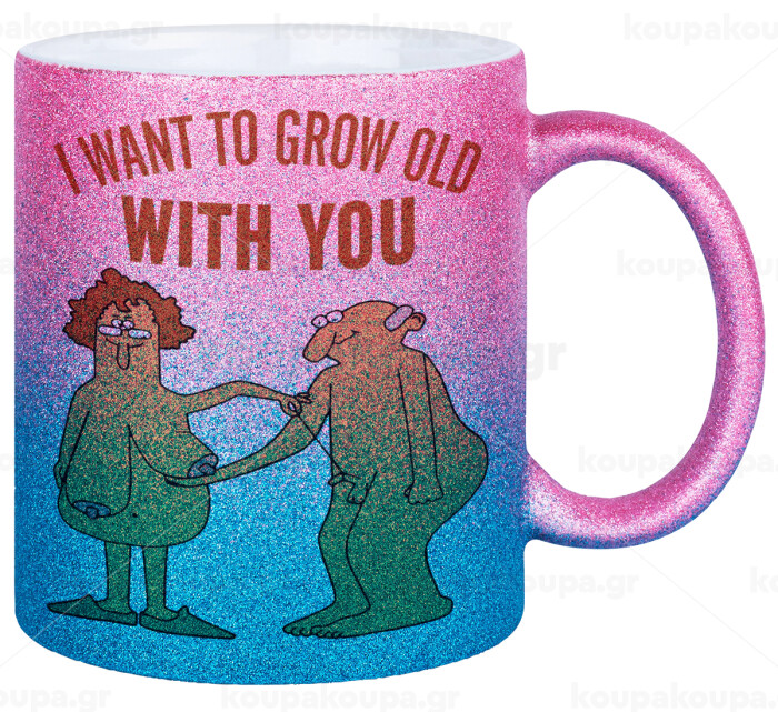 I want to grow old with you, Κούπα Χρυσή/Μπλε Glitter, κεραμική, 330ml