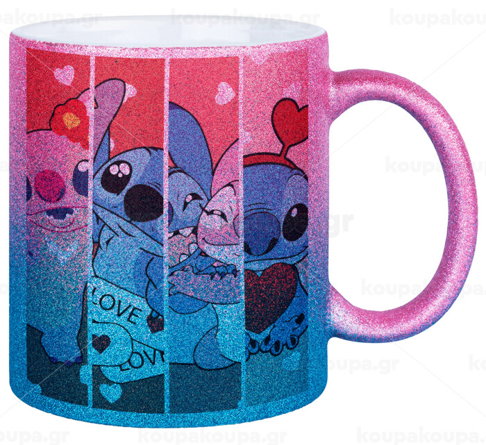 Lilo & Stitch Love, Κούπα Χρυσή/Μπλε Glitter, κεραμική, 330ml