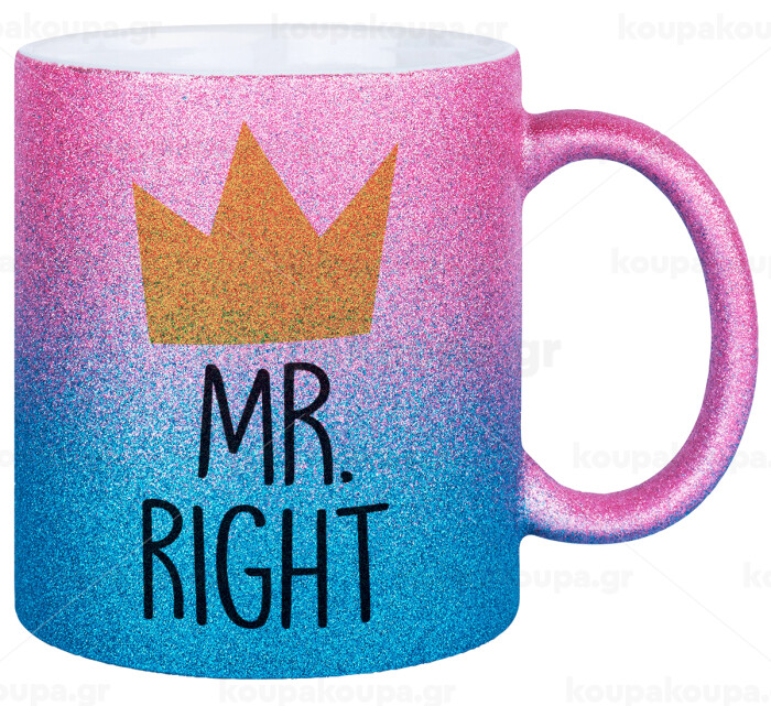 Mr right, Κούπα Χρυσή/Μπλε Glitter, κεραμική, 330ml