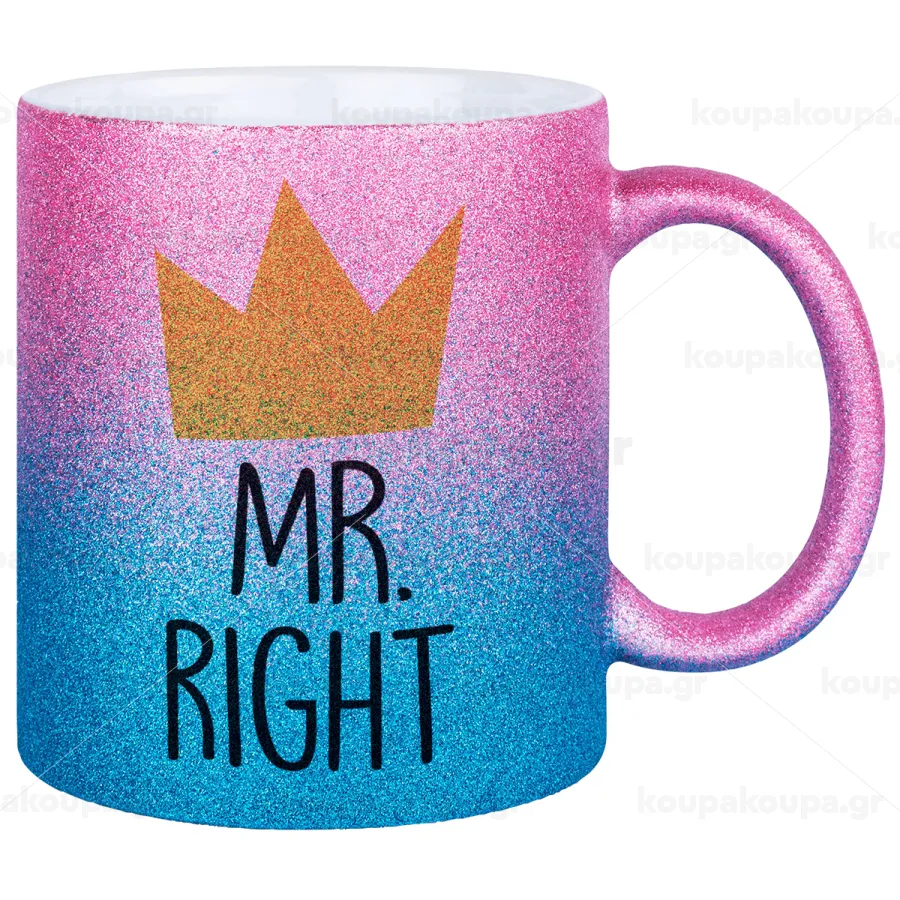 Mr right, Κούπα Χρυσή/Μπλε Glitter, κεραμική, 330ml