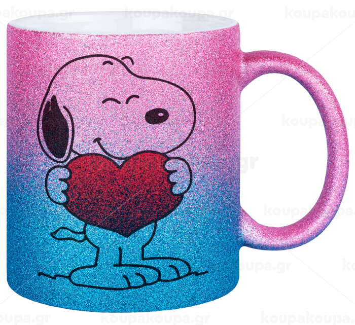 Snoopy takemy heart, Κούπα Χρυσή/Μπλε Glitter, κεραμική, 330ml