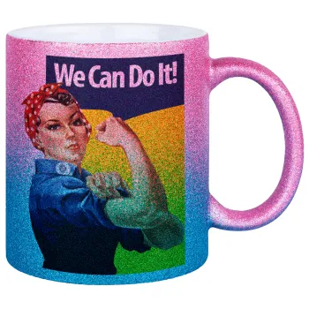 Rosie we can do it!, Κούπα Χρυσή/Μπλε Glitter, κεραμική, 330ml