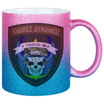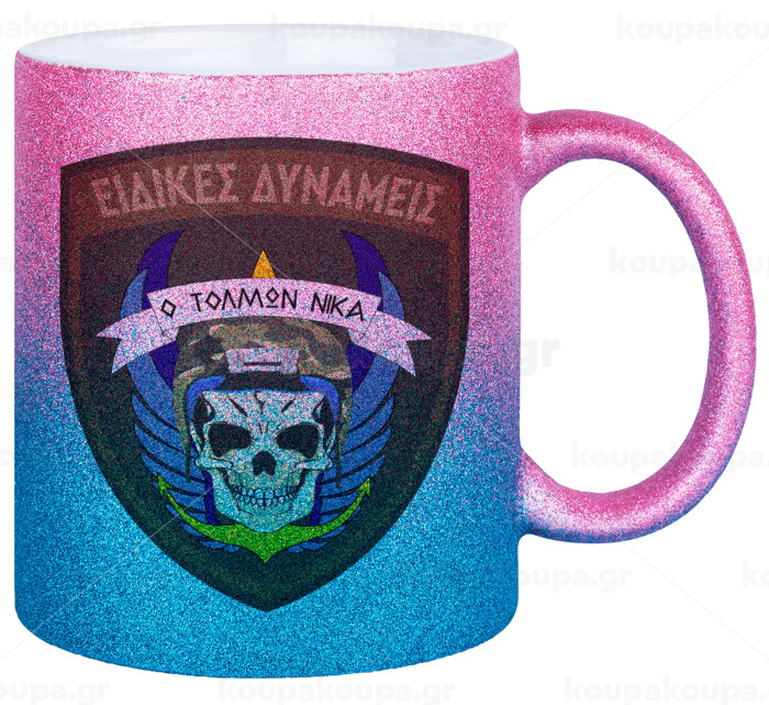 Hellas special force's, Κούπα Χρυσή/Μπλε Glitter, κεραμική, 330ml