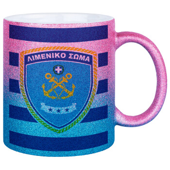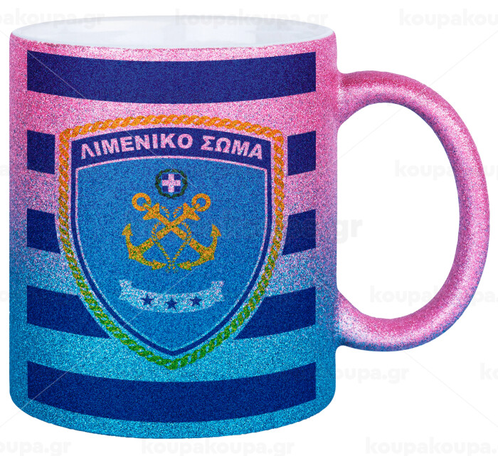 Hellenic coast guard, Κούπα Χρυσή/Μπλε Glitter, κεραμική, 330ml