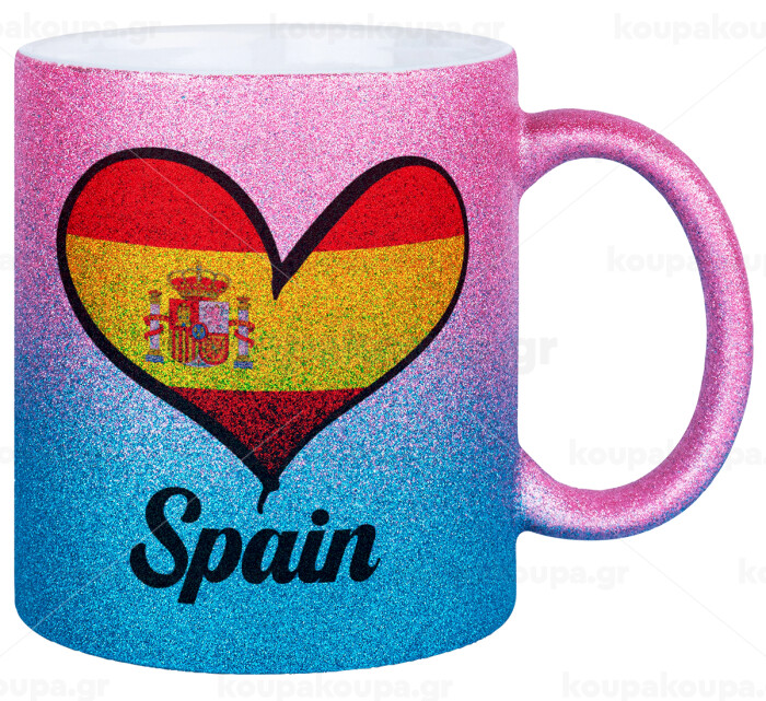 Spain flag, Κούπα Χρυσή/Μπλε Glitter, κεραμική, 330ml