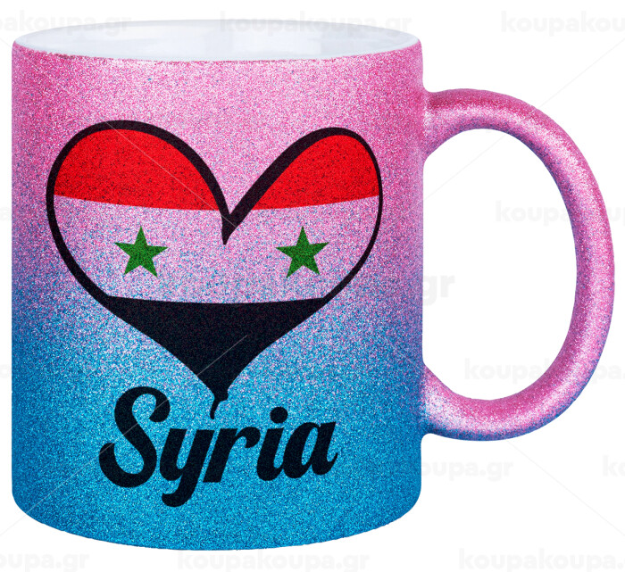Syria flag, Κούπα Χρυσή/Μπλε Glitter, κεραμική, 330ml