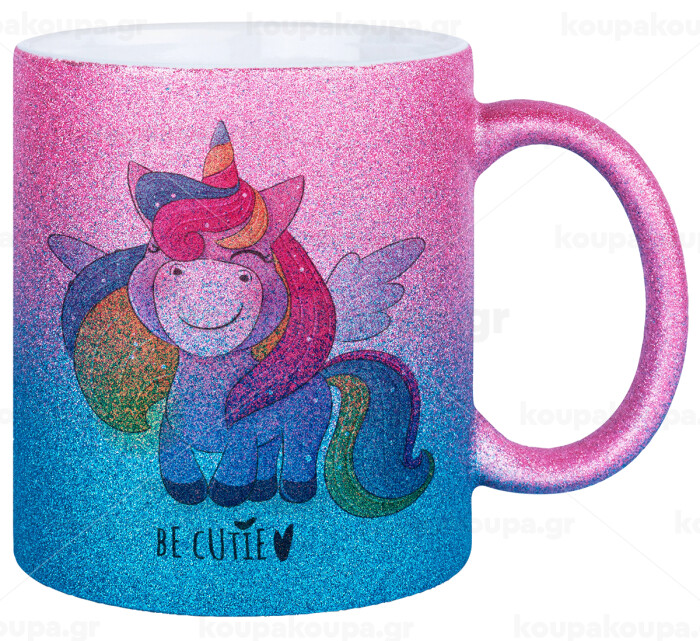 Pink unicorn, Κούπα Χρυσή/Μπλε Glitter, κεραμική, 330ml