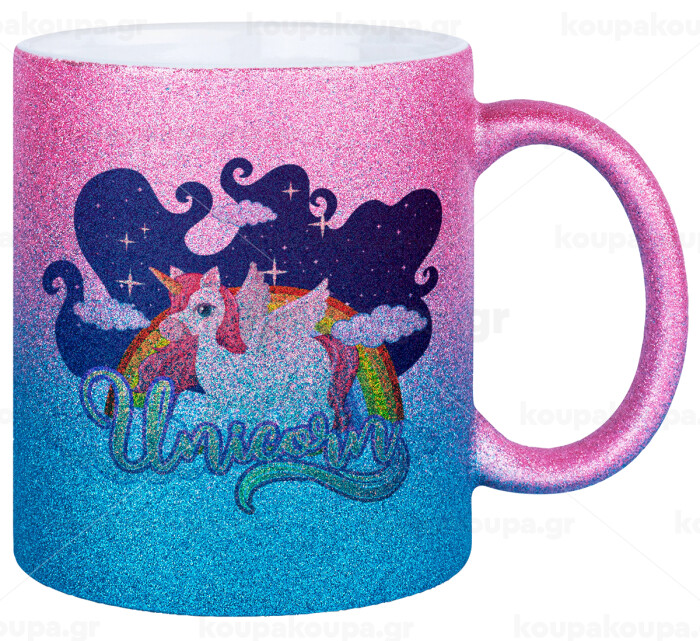 Μονόκερος, Κούπα Χρυσή/Μπλε Glitter, κεραμική, 330ml